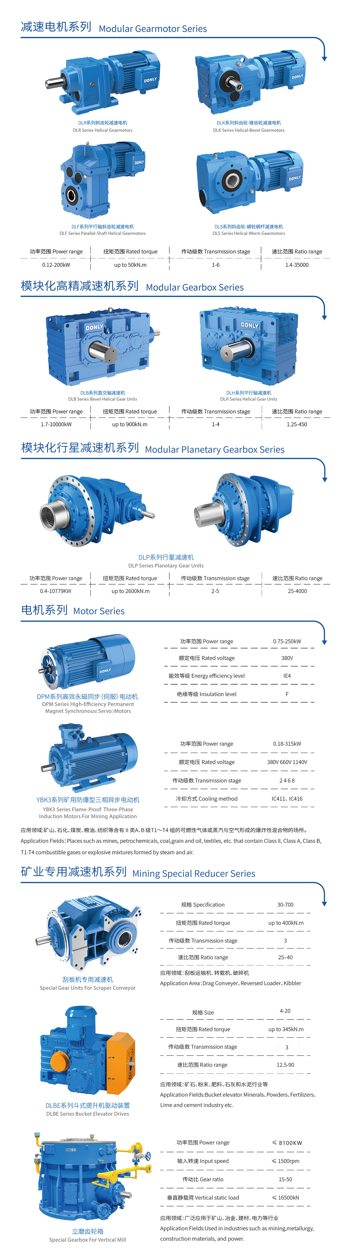 Sản phẩm được sử dụng rộng rãi trong ngành khai thác mỏ, bao gồm khai thác, nghiền, xay, khuấy, nâng gầu và vận chuyển, có khả năng chống mài mòn, chống cháy nổ và ổn định tốt. Kết hợp với hệ thống giám sát trực tuyến của Dongli, sản phẩm có thể cảnh báo sớm các sự cố vận hành, đảm bảo hoạt động an toàn và trơn tru trong môi trường khắc nghiệt.